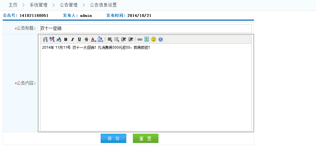 2.公告列表:在公告列表的操作一欄 可以對改公告進行修改和刪除的操作
